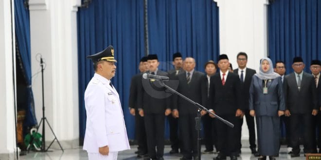 BANDUNG – Penjabat (Pj) Gubernur Jawa Barat Bey Machmudin atas nama Presiden RI melantik Barnas Adjidin sebagai Pj. Bupati Garut, di Aula Barat Gedung Sate, Selasa (23/1/2024).